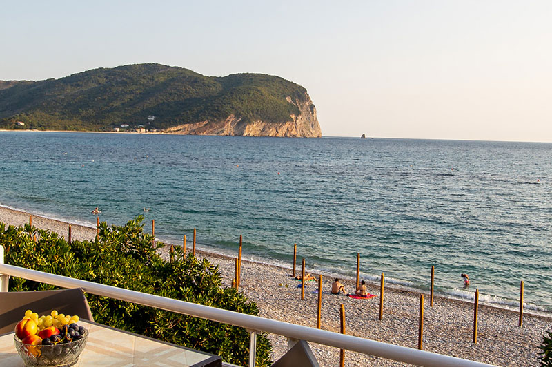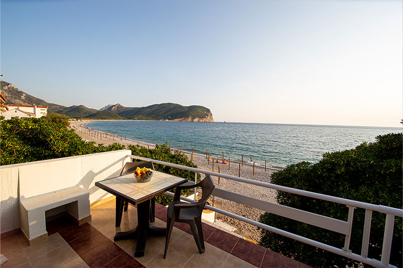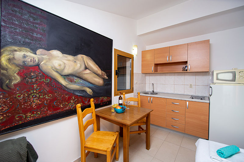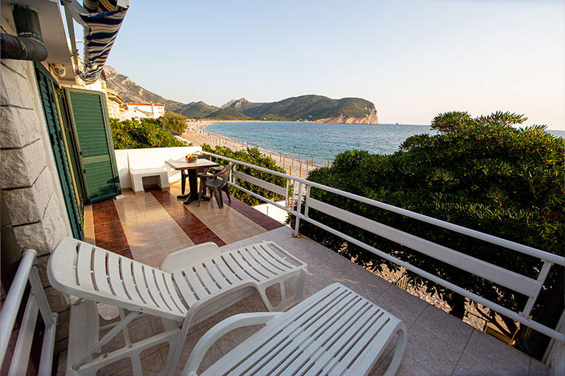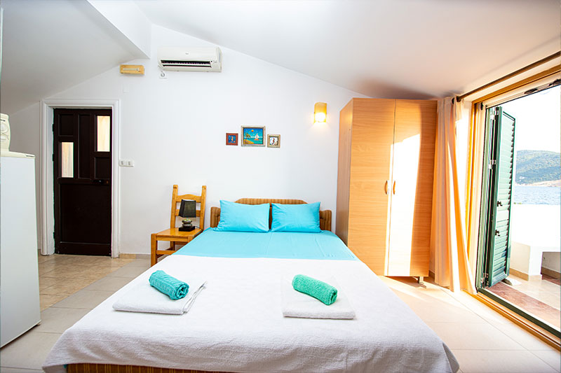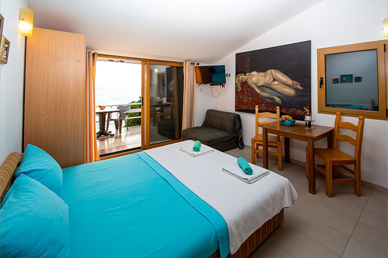 Moderno opremljen studio, prilagodjen za udoban i prijatan porodični odmor. Studio se nalazi na prvom spratu naše Vile. Studio se sastoji od spavaće sobe u kojoj se nalazi bračni ležaj, kompletno opremljene kuhinje, kupatila i terase sa pogledom na more.