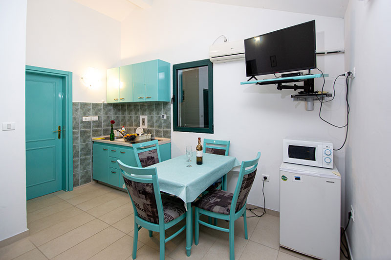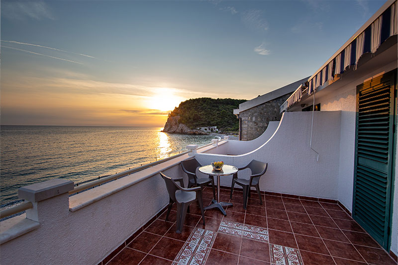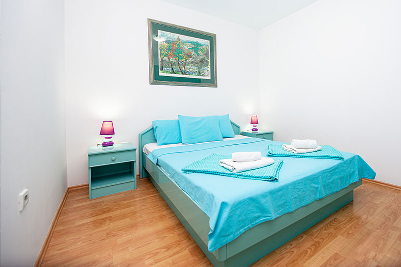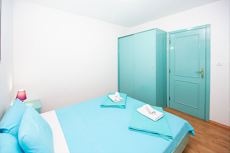 Moderno opremljen apartman, prilagodjen za udoban i prijatan porodični odmor. Apartman se nalazi na drugom spratu naše Vile. Apartman se sastoji od spavaće sobe u kojoj se nalazi bračni ležaj, dnevne sobe u kojoj se nalaze dve fotelje koje lako mogu da se pretvore u krevete, kompletno opremljene kuhinje, kupatila i velike otvorene terase sa pogledom na more